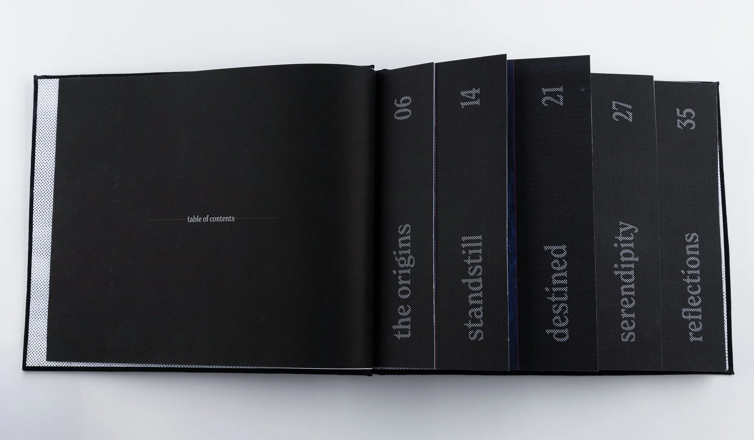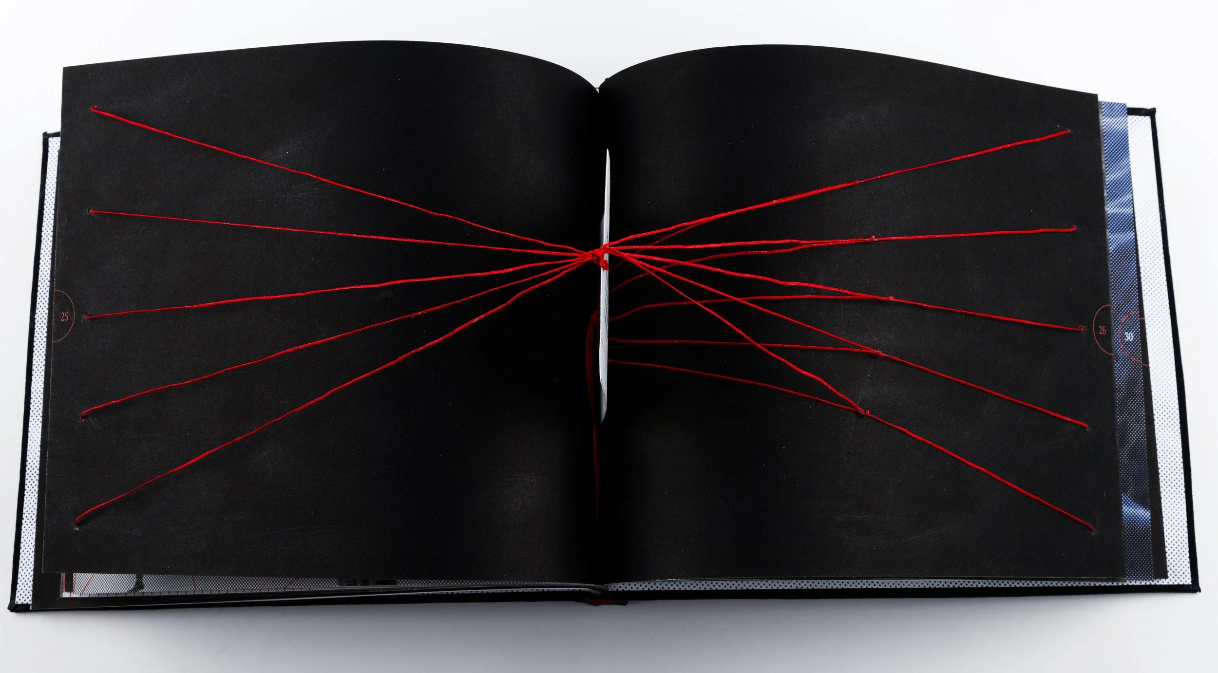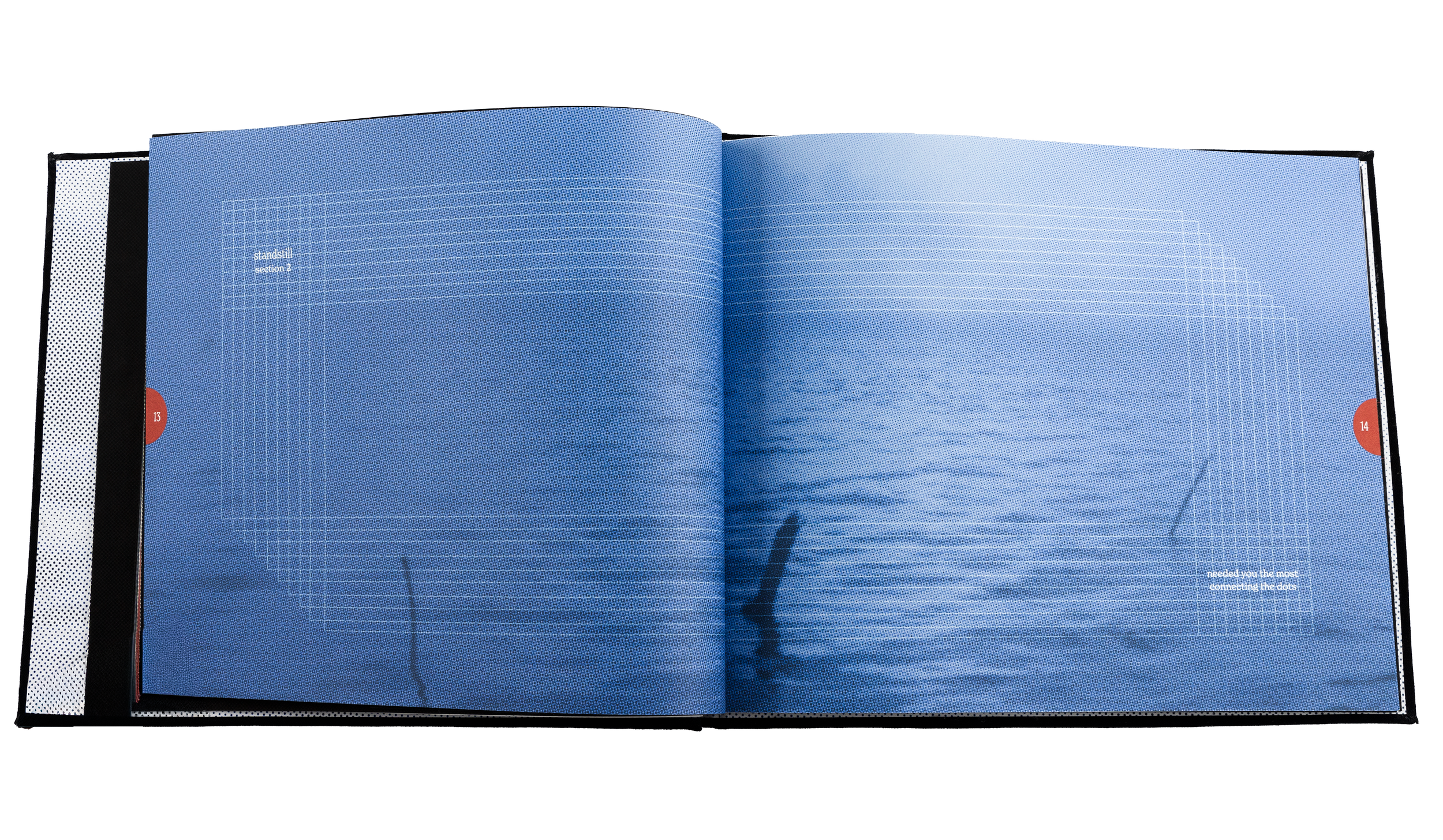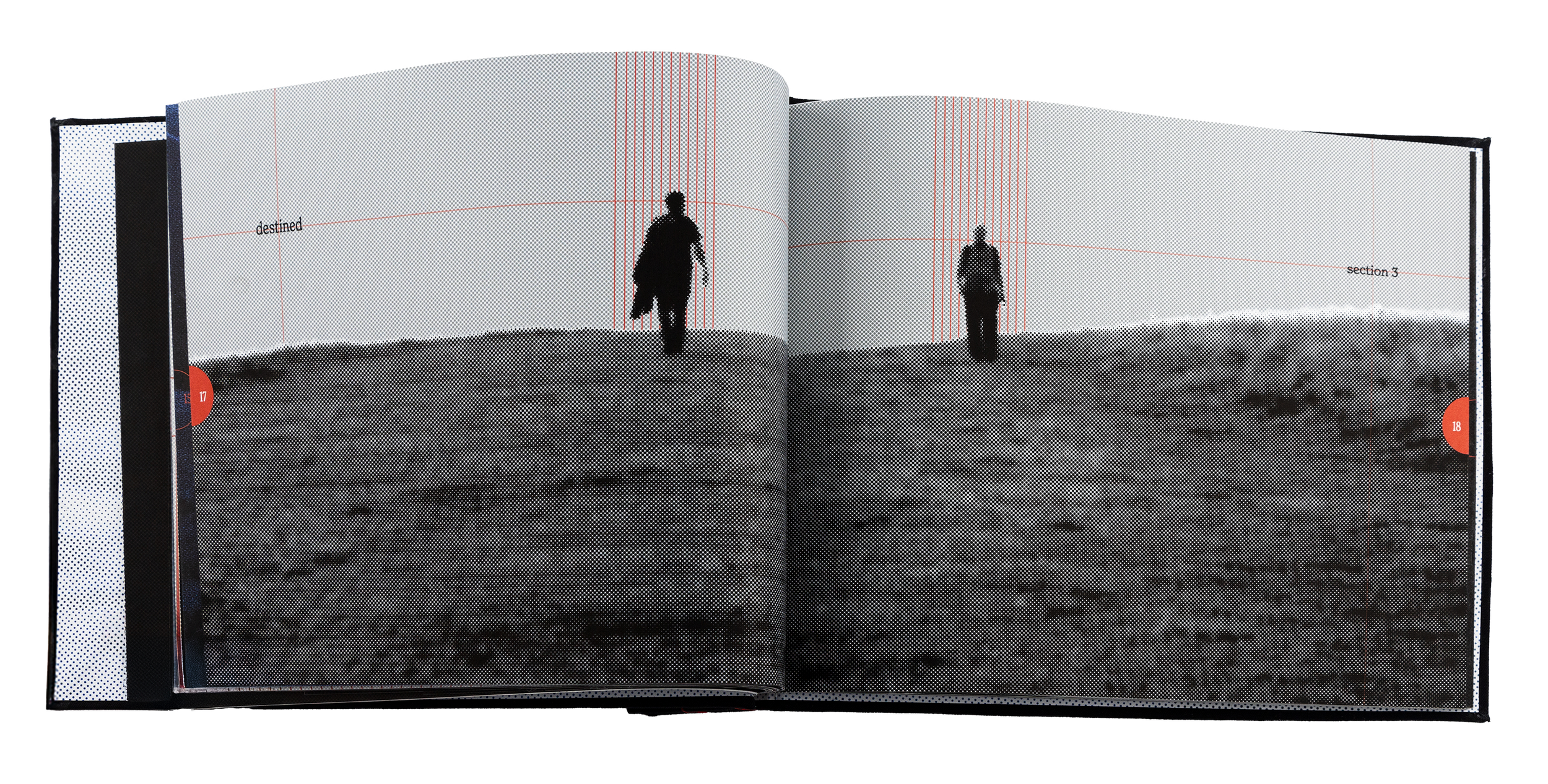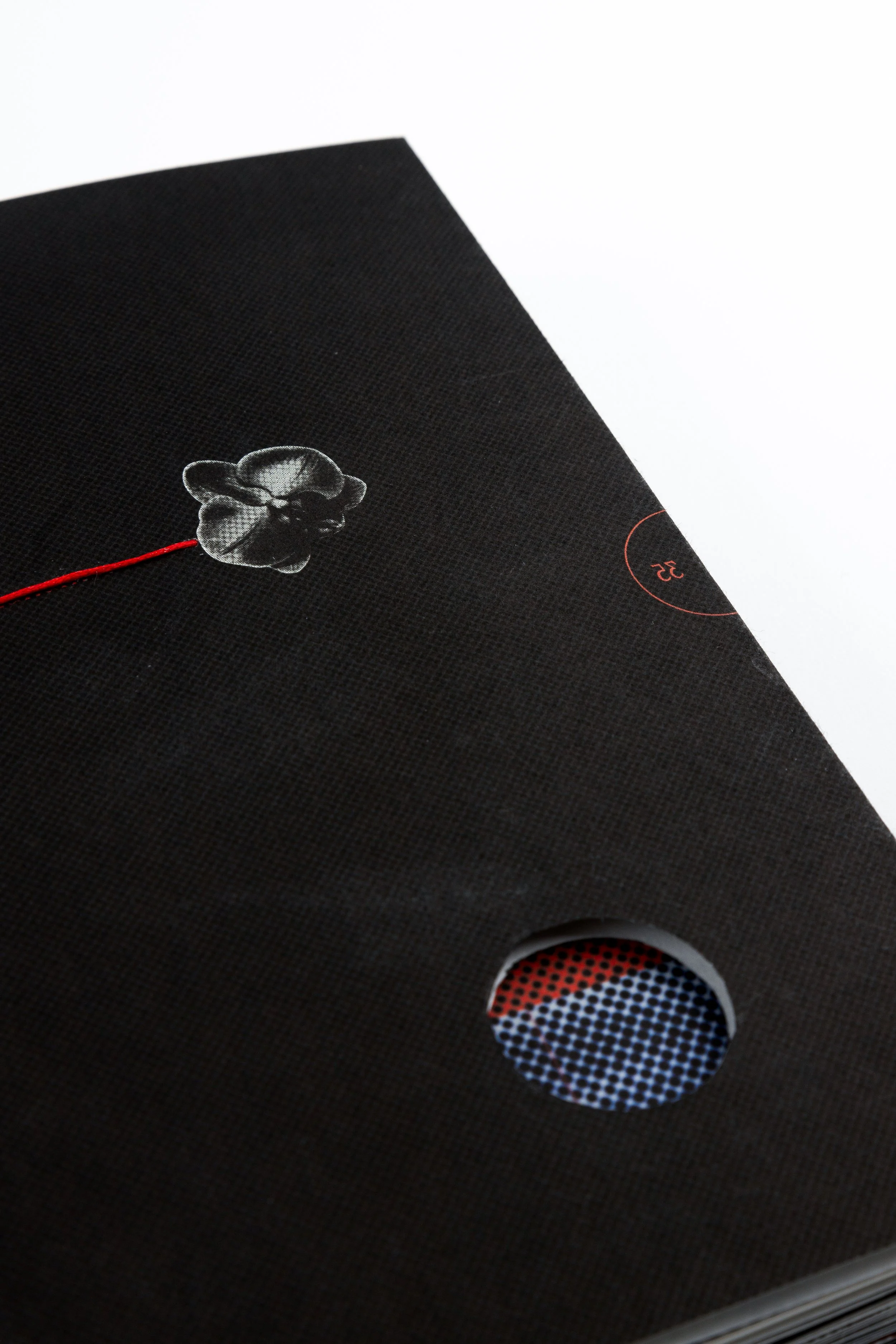 This section deals with the idea that you can walk past a destined connection without noticing. Die cuts, physical string, and a grid-based layout create a non-direct reading path that still makes sense from any starting point. One spread only reads correctly when the book is fully open, which controls how it can be viewed.